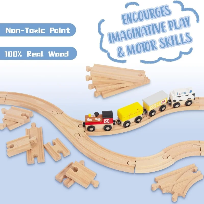 【Create Your Own Track World】: Train track accessories are essential accessories in toy train tracks, which can help wooden train tracks run smoothly. If your children love track and trains, this train track set will be an ideal gift for them, which can expand their existing wooden train track system and add the world to it
