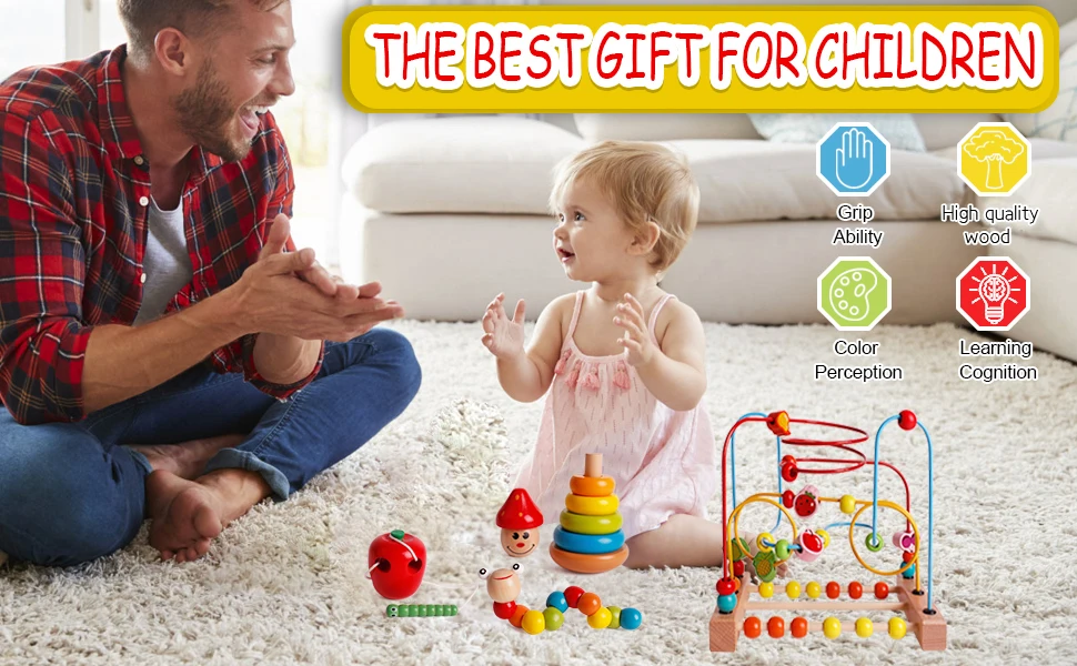 Montessori Toys Baby Wooden Roller Coaster Bead Maze Toddler Early Learning Educational Puzzle Math Toy for Children 1 2 3 Years