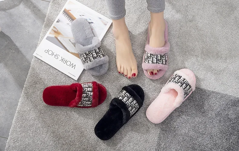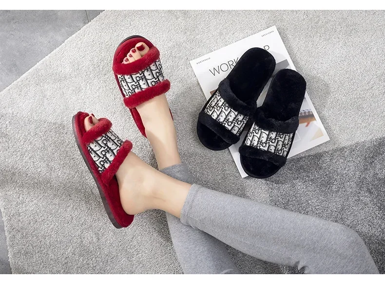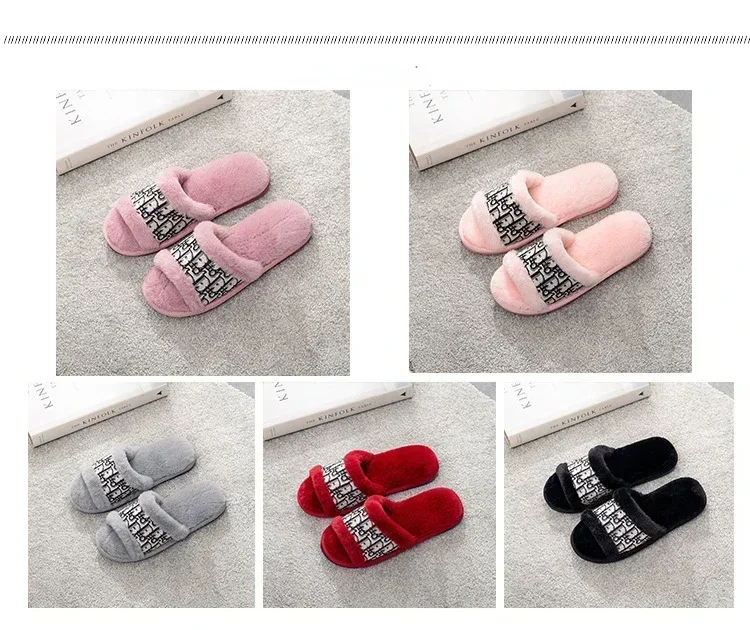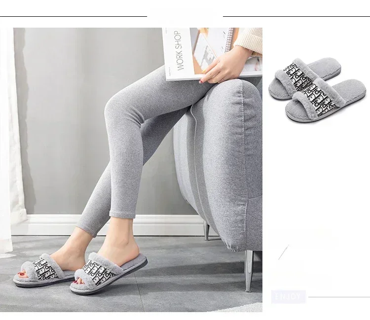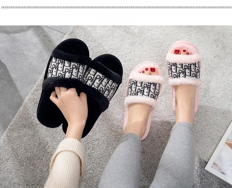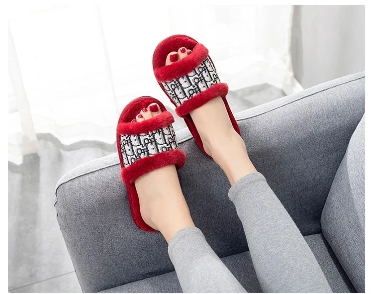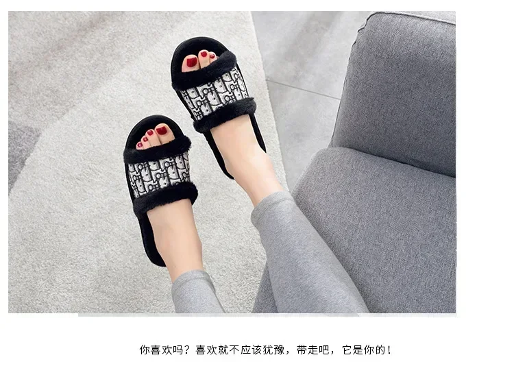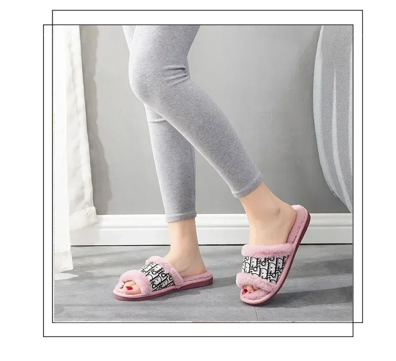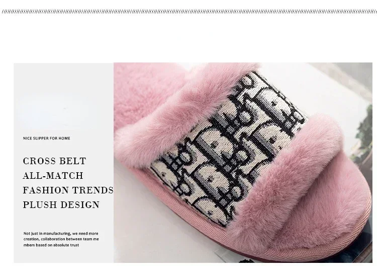 These indoor women's slippers from YUEYANG feature a cozy fur upper and a geometric-pattern design, perfect for winter wear. They have a low flat heel (1–3 cm) with a PVC insole and outsole for comfort and durability. The pull-on design ensures easy wear, while the British-style aesthetic adds a touch of elegance. True to size, these slippers are ideal for stylish and comfortable indoor use.