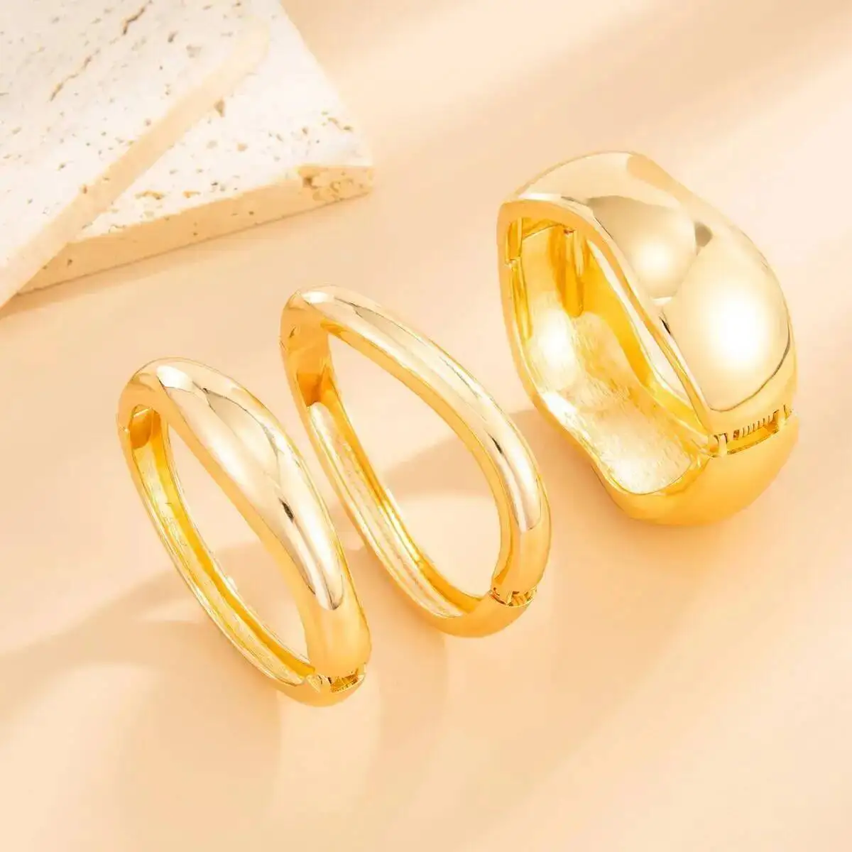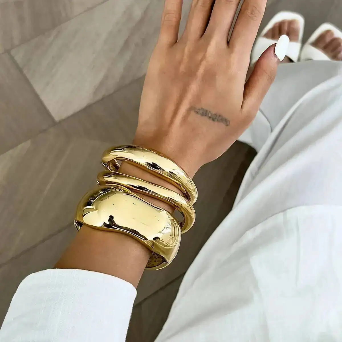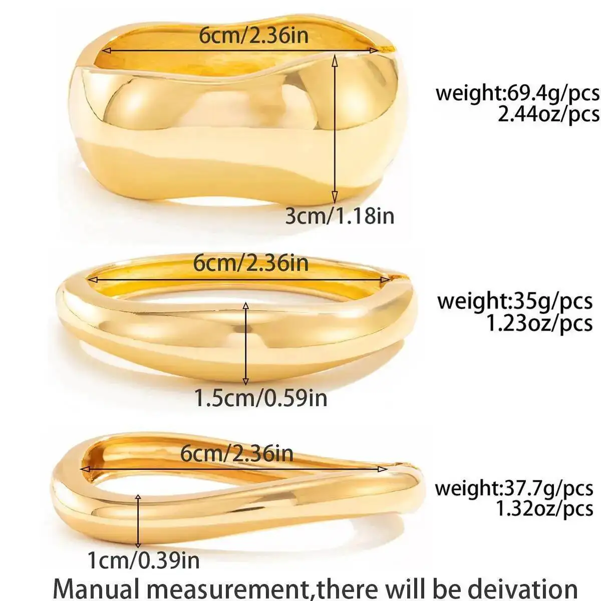 Metalora - Ingemark 3 Styles Punk Metal Spring Wide Bangles Women Hip Hop Gold Color Geometric Arm Bracelets Grunge Jewelry Steampunk Men